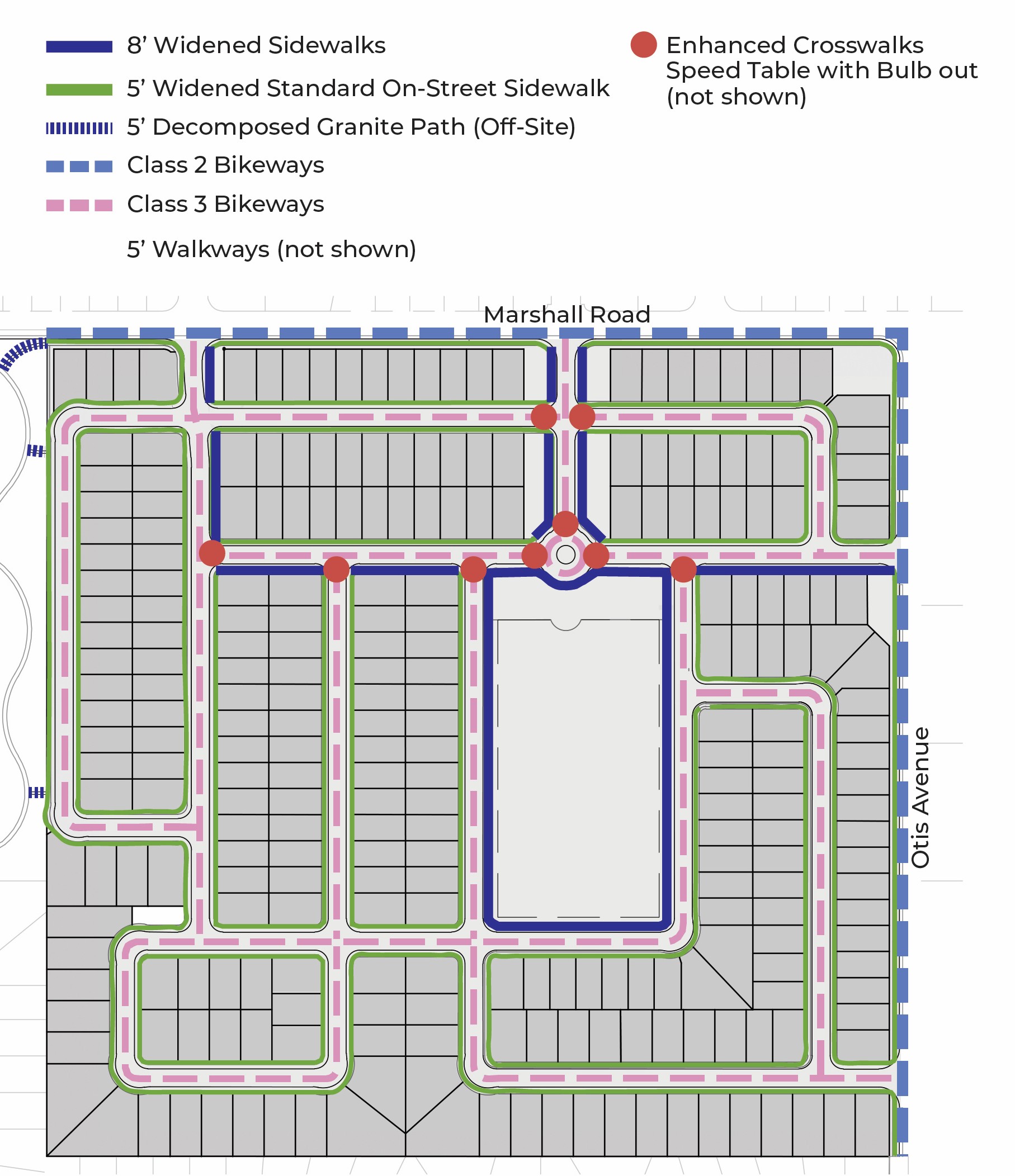 Improved sidewalks along Marshall Road and Otis avenues
