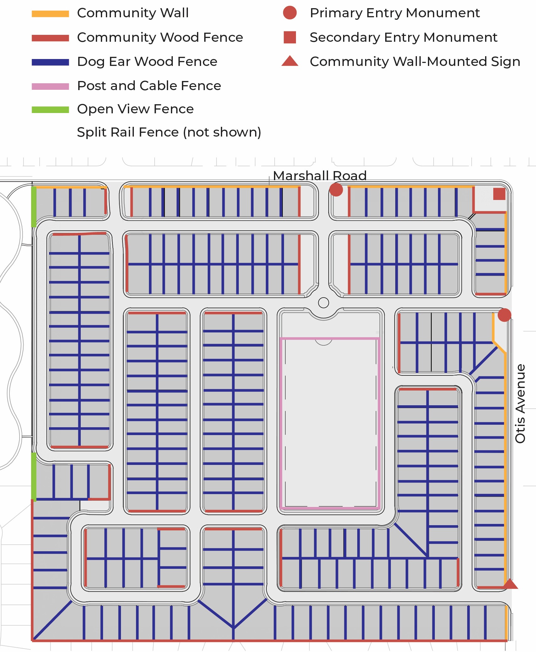 6-foot walls along Marshall Road and Otis avenues